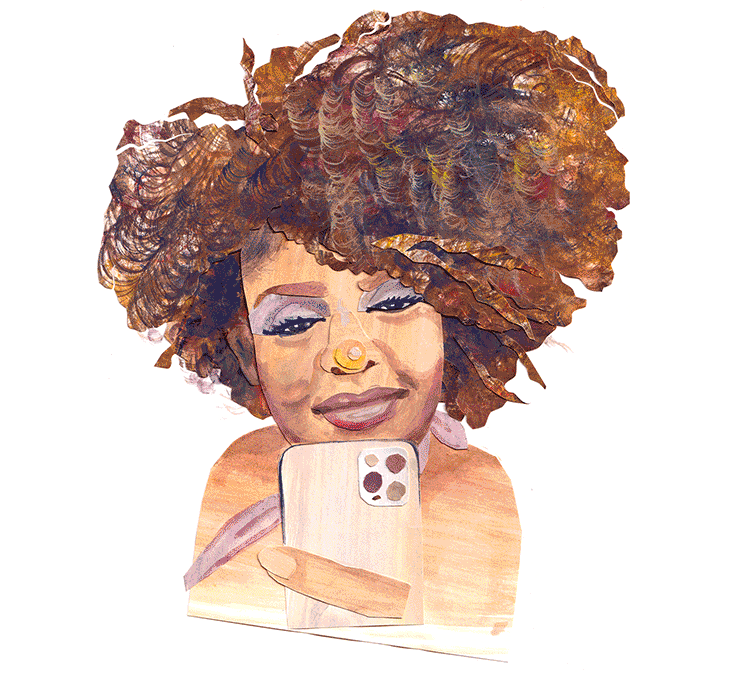 A series of collaged portraits, featuring Darnella Frazier, a wet dog, and Sha’Carri Richardson.
