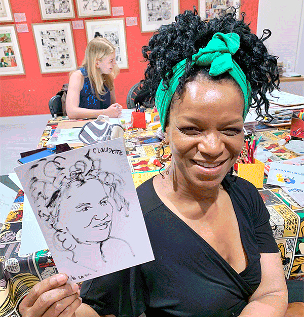I offer live drawing at events, drawing 60-second portraits. These are taken from a Green Graduates celebratory event at the Cartoon Museum